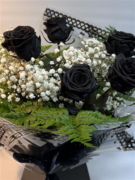 Standard price is for 6 Black Roses with gyp and mixed foliage.