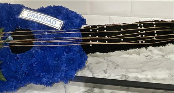 Guitar on a stand for that perfect tribute for a music lover, guitar player.