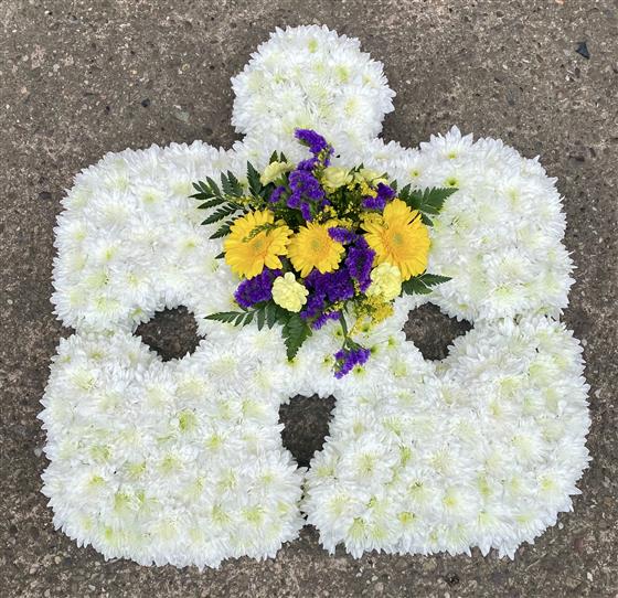 A Jigsaw puzzle piece based with white flowers with a flower spray in the centre in a colour of your choice