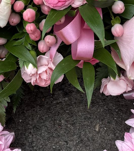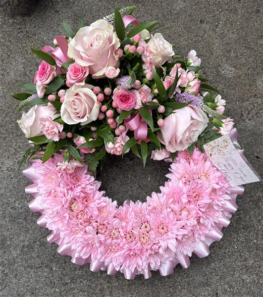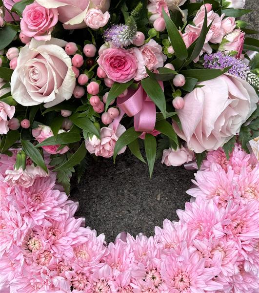 Massed pink wreath ring