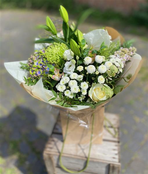 Embrace nature with this very on trend neutral bouquet containing blush roses, spray roses, scented stocks, astilbe and alstroemeria.