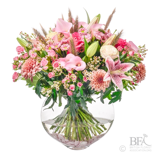 This Large Lavish Hand tied filled with an array of premium flowers.