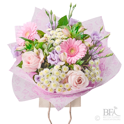 The name says it all, a beautiful selection of pastel flowers including the ever popular Roses, Gemini and Lizzianthus. Presented gift wrapped in a bag for ease of handling.